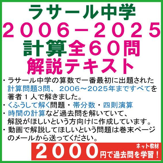 『ラサール中学 2006-2025 計算問題 全60問 解説テキスト』として、