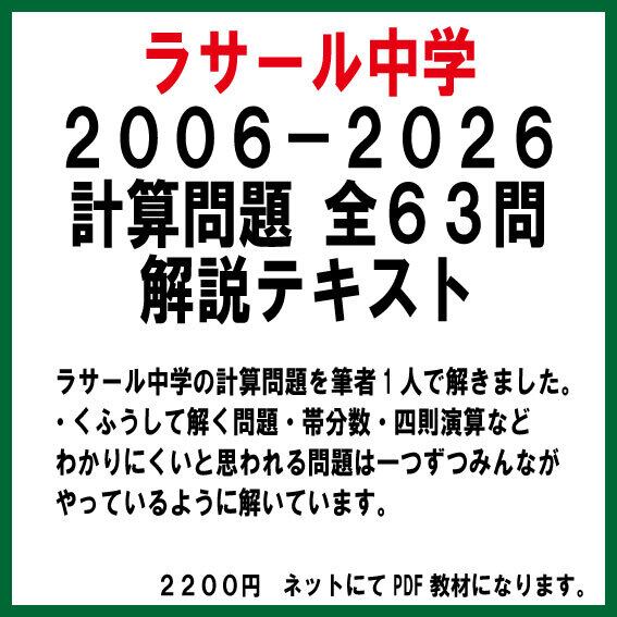 『ラサール中学 2006-2026 計算問題 全63問 解説テキスト』として、